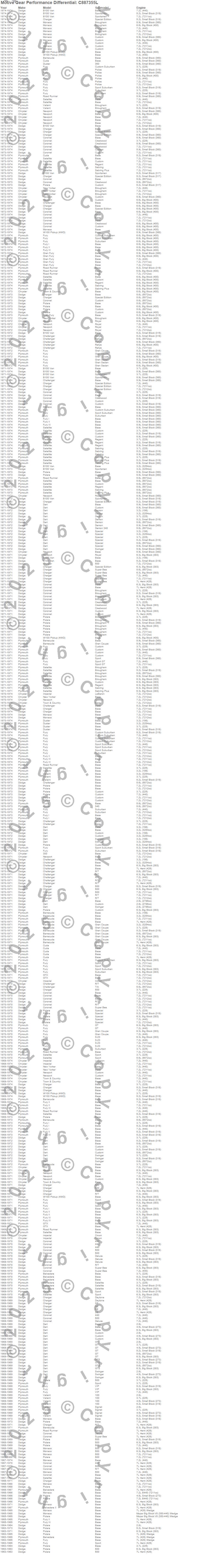 300, B100 Van, Barracuda, Belvedere, Belvedere II, Challenger, Charger, Coronet, Cuda, Dart, Duster, Fury, Fury I, Fury II, Fury III, Gran Fury, GTX, Imperial, Monaco, New Yorker more…