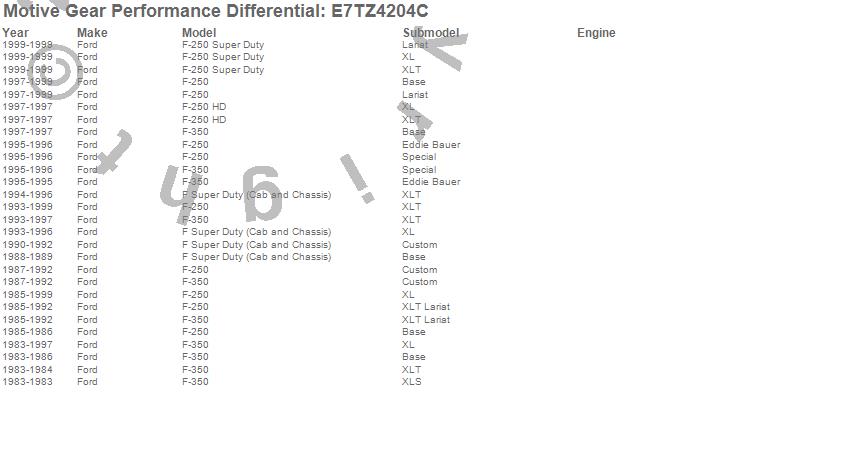 Below is an abreviated list of applications for the Differential Gear Case.