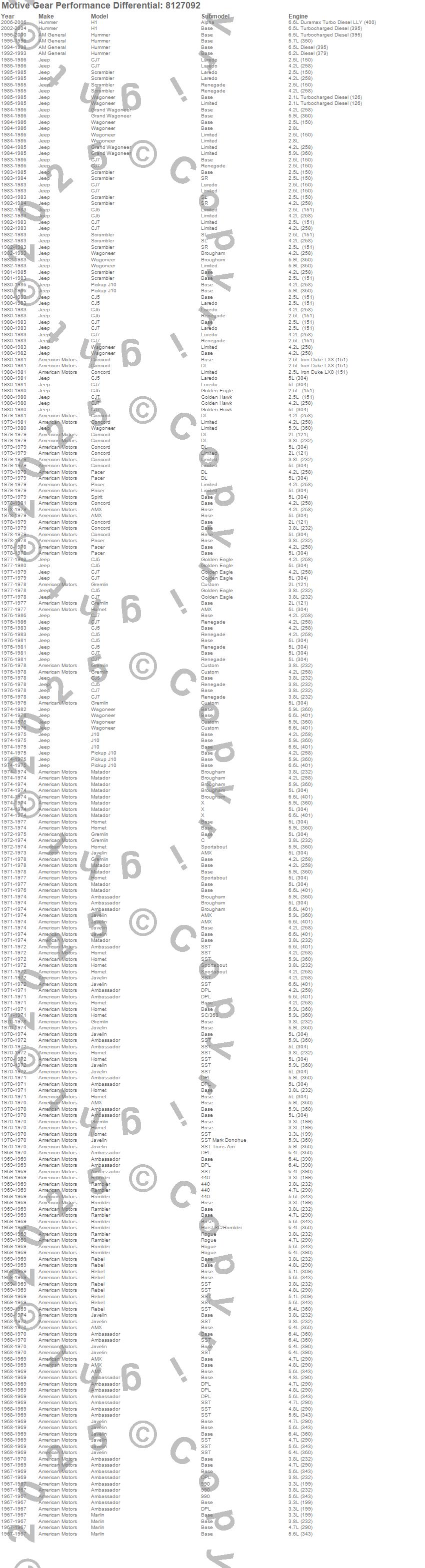 Ambassador, AMX, CJ5, CJ7, Concord, Grand Wagoneer, Gremlin, H1, Hornet, Hummer, J10, Javelin, Marlin, Matador, Pacer, Rambler, Rebel, Scrambler, Spirit, Wagoneer more…