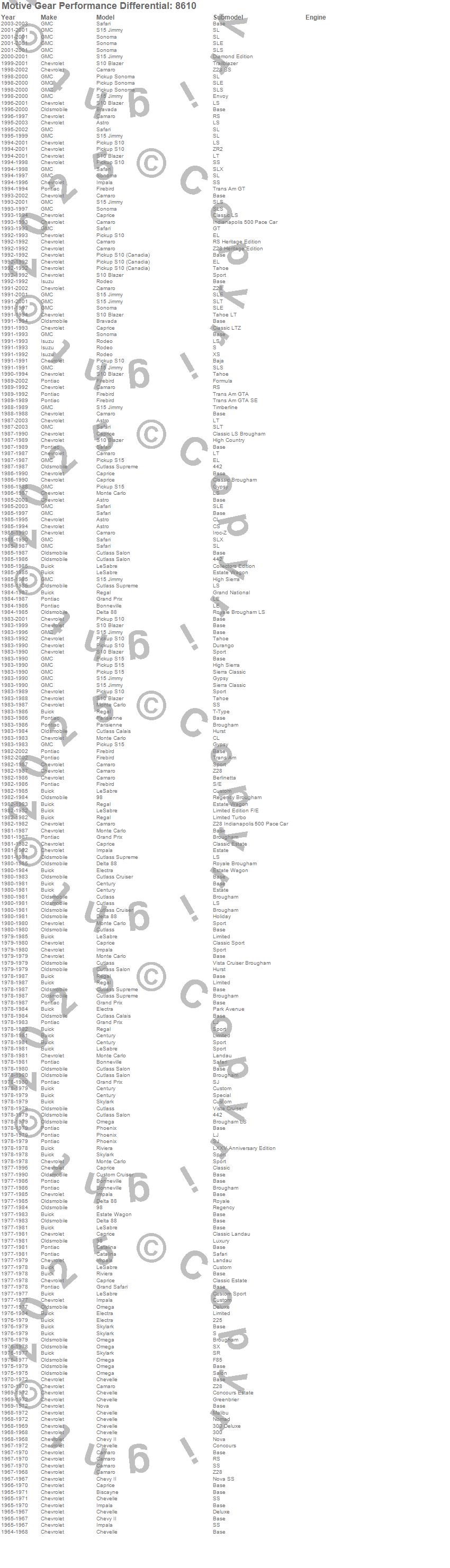 Below is an abreviated list of applications for the Pinion Seal.