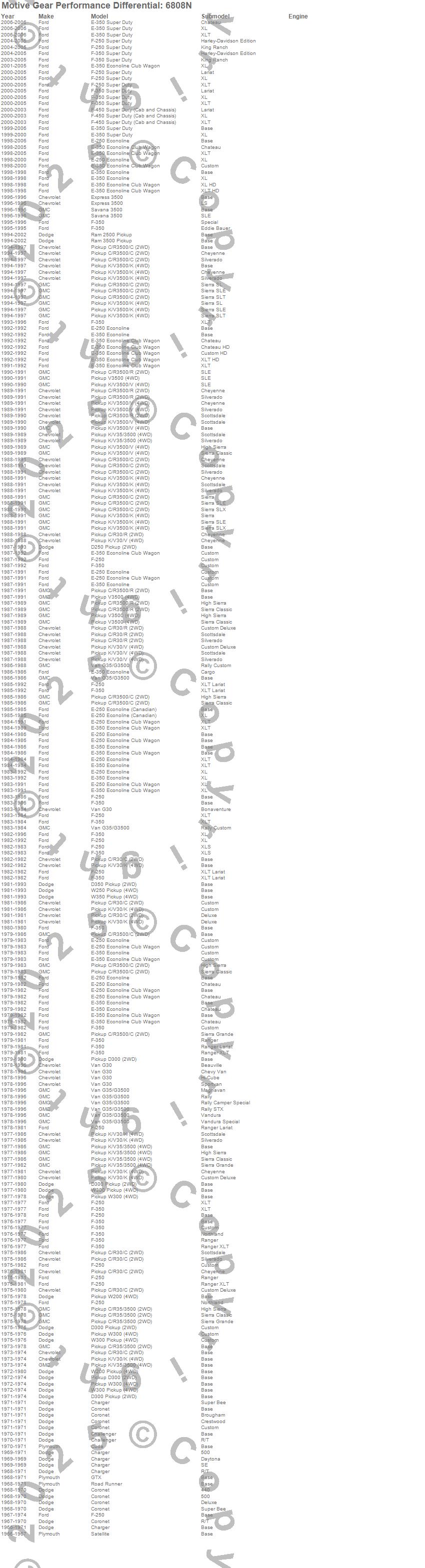 C30 Pickup, C35/C3500 Pickup, C3500 Pickup, Challenger, Charger, Coronet, Cuda, D250 Pickup, D300 Pickup, D350 Pickup, E-250 Econoline, E-250 Econoline Club Wagon, E-250 Super Duty, E-350 Econoline, E-350 Econoline Club Wagon, E-350 Super Duty, Express 3500, F-250, F-250 Super Duty, F-350 more…