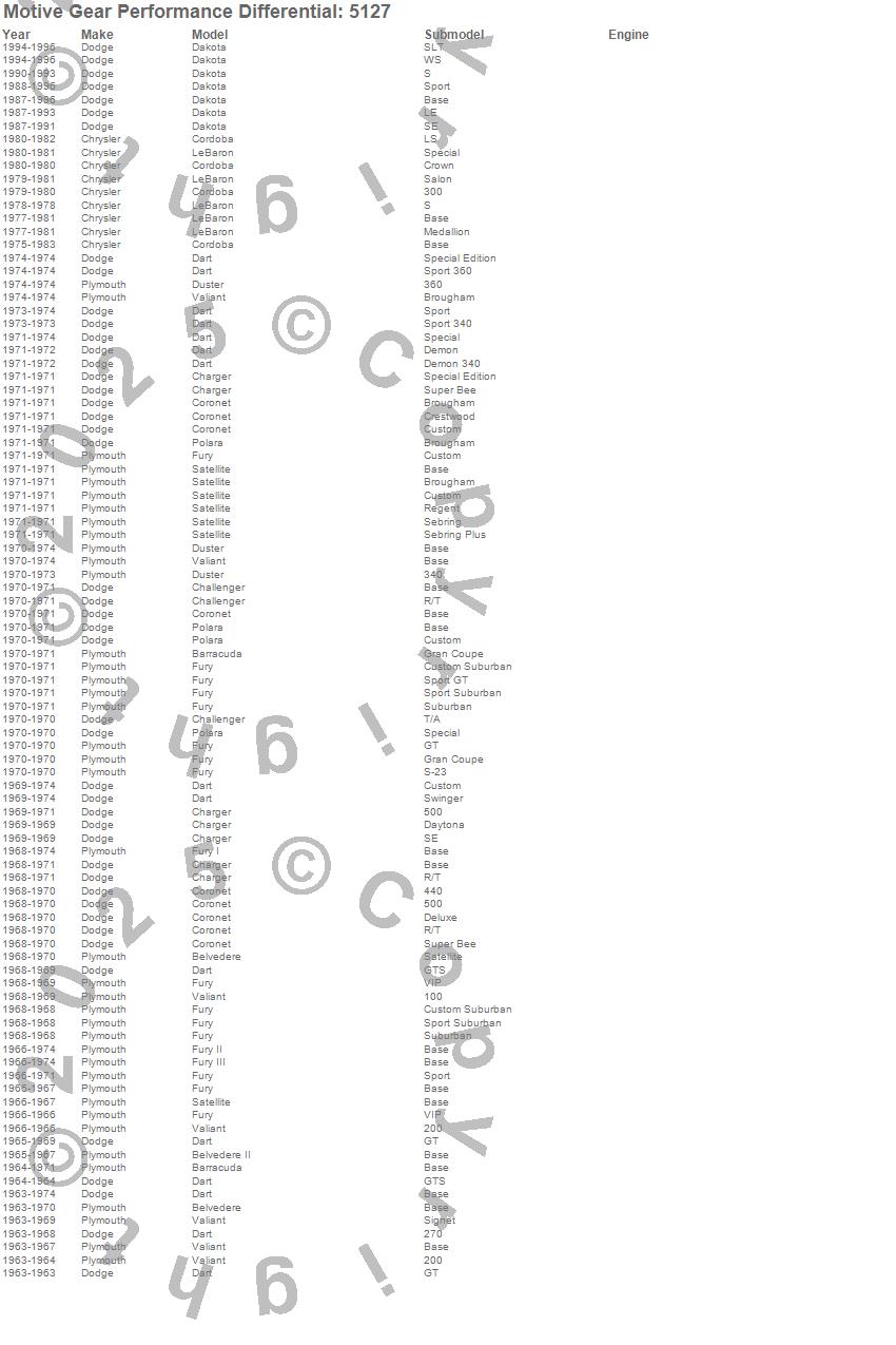 Below is an abreviated list of applications for the Differential Cover Gasket.