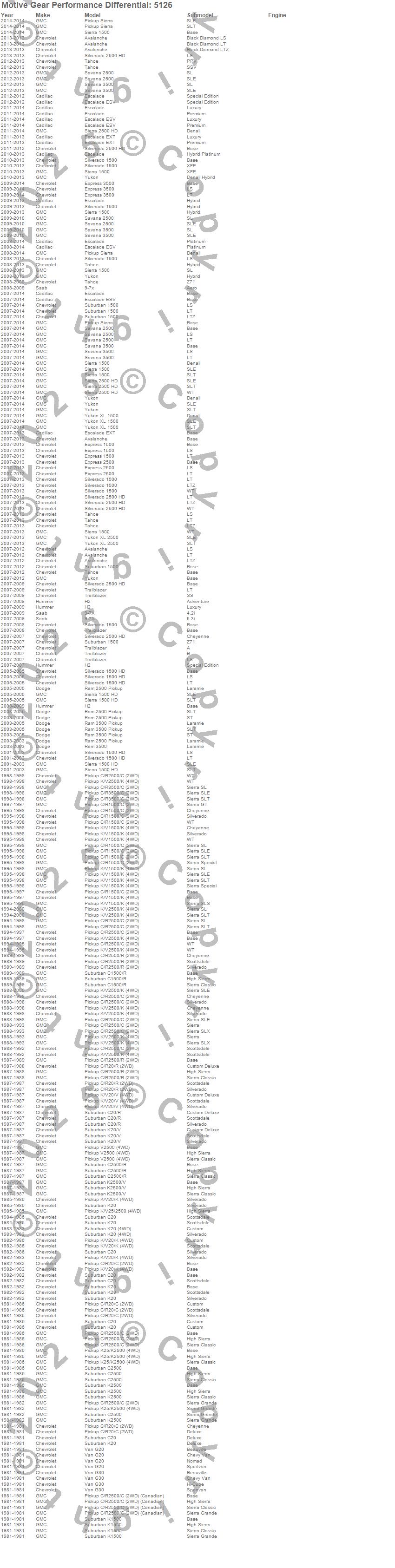 Below is an abreviated list of applications for the Differential Cover Gasket.