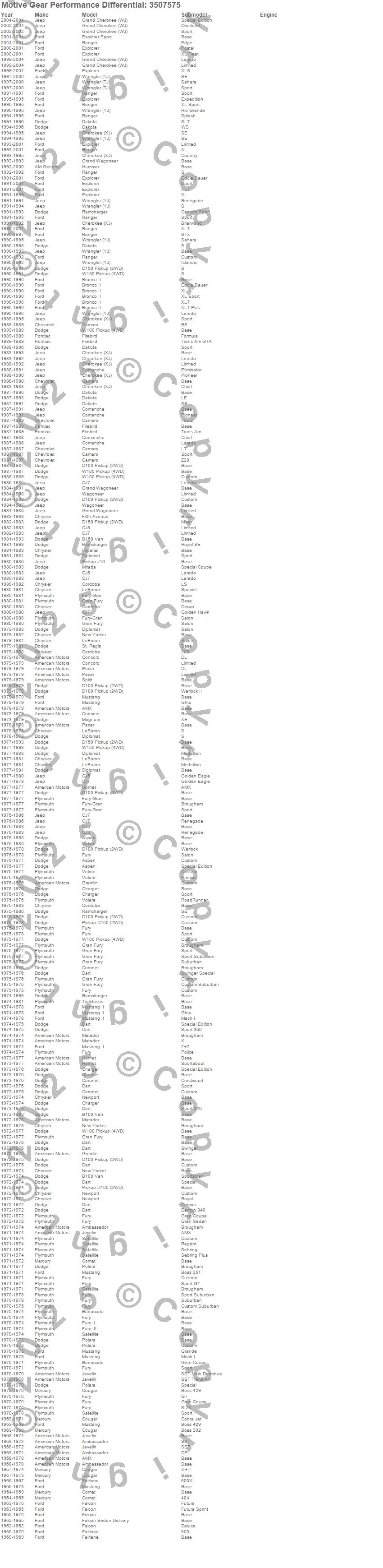 Ambassador, AMX, Aspen, B100 Van, B150, B150 Van, Barracuda, Bronco II, Camaro, Charger, Cherokee (XJ), CJ5, CJ7, Comanche, Comet, Concord, Cordoba, Coronet, Cougar, D100 Pickup more…