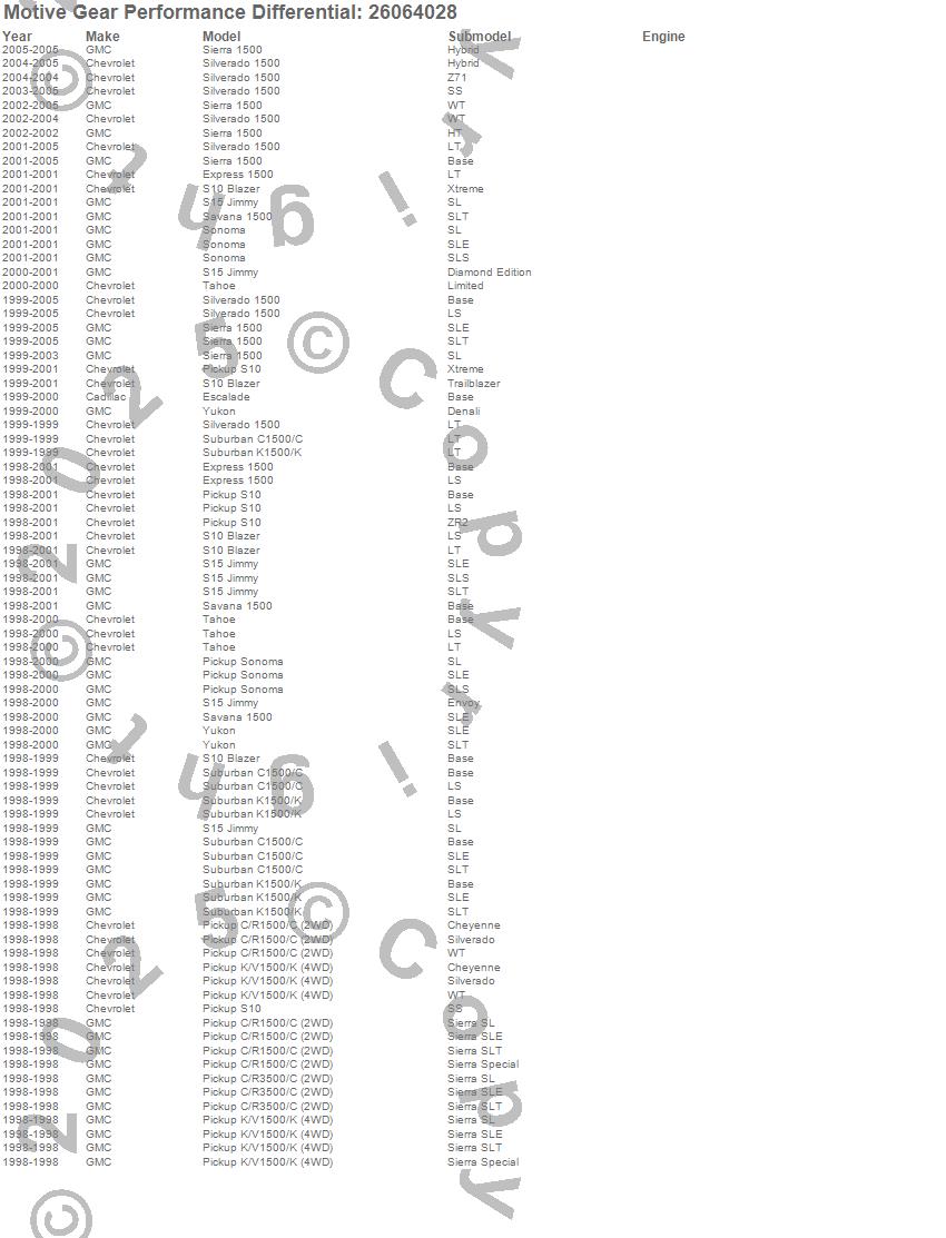 C1500 Pickup, C1500 Suburban, C3500 Pickup, Escalade, Express 1500, K1500 Pickup, K1500 Suburban, S10 Blazer, S10 Blazer (Canadian), S10 Pickup, S15 Jimmy, Savana 1500, Sierra 1500, Silverado 1500, Sonoma, Tahoe, Yukon, Cadillac, Chevrolet, GMC more…