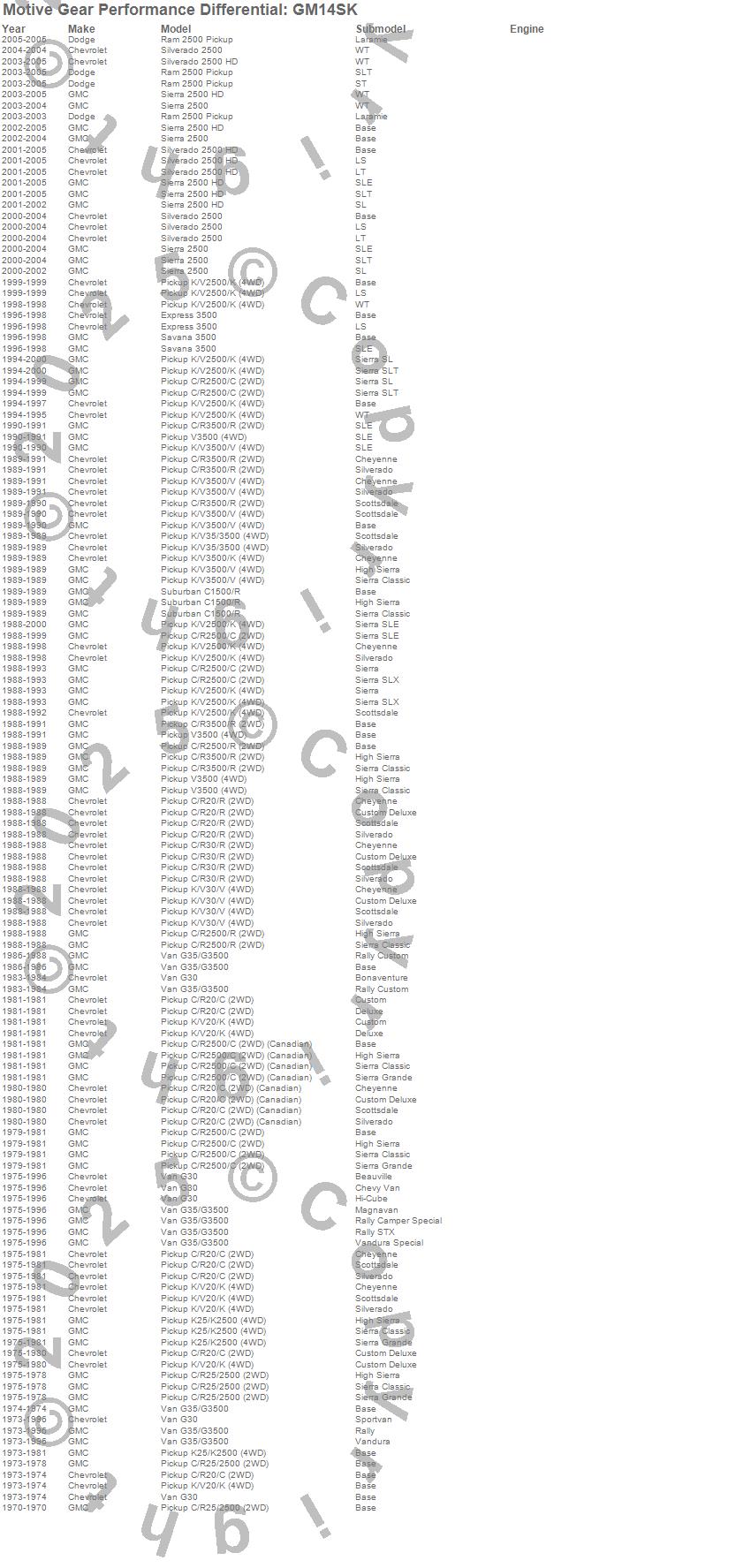 C20 Pickup, C25/C2500 Pickup, C2500 Pickup, Express 3500, G30, G30 Van, G35/G3500 Van, K20 Pickup, K25 Pickup, K25/K2500 Pickup, K2500 Pickup, R20 Pickup, R2500 Pickup, R30 Pickup, R3500 Pickup, Ram 2500, Savana 3500, Sierra 2500, Sierra 2500 HD, Silverado 2500 more…