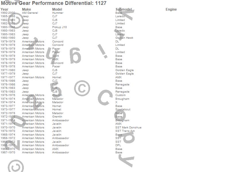 Below is an abreviated list of applications for the Pinion Shim Pack.