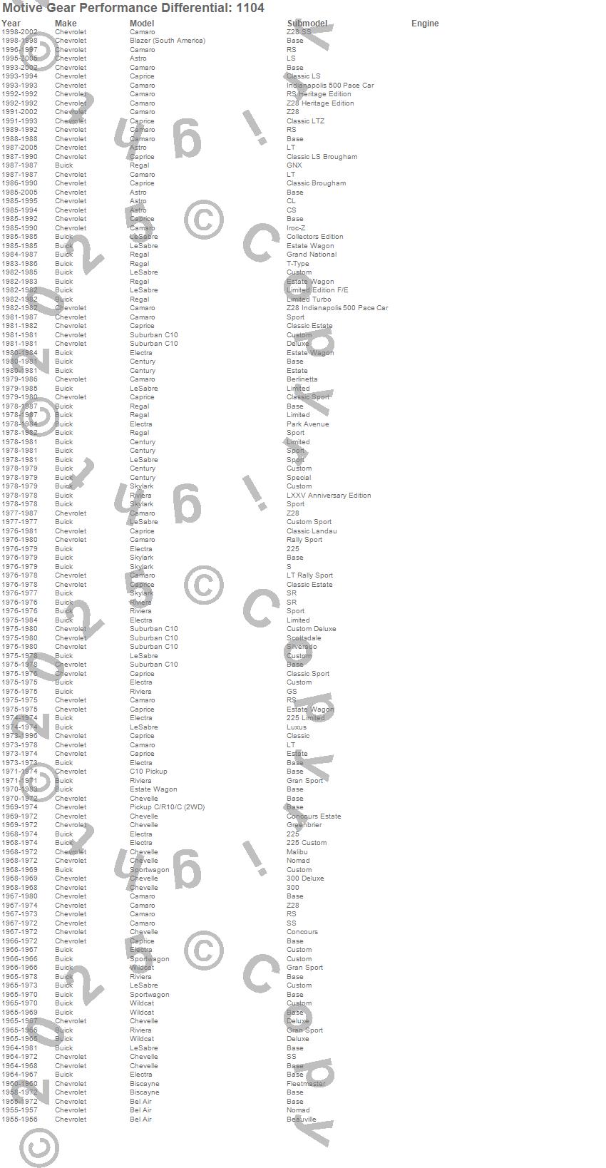 Astro, Bel Air, Biscayne, Blazer (South America), C10 Pickup, C10 Suburban, Camaro, Caprice, Century, Chevelle, Electra, Estate Wagon, LeSabre, Regal, Riviera, Skylark, Sportwagon, Wildcat, Buick, Chevrolet more…