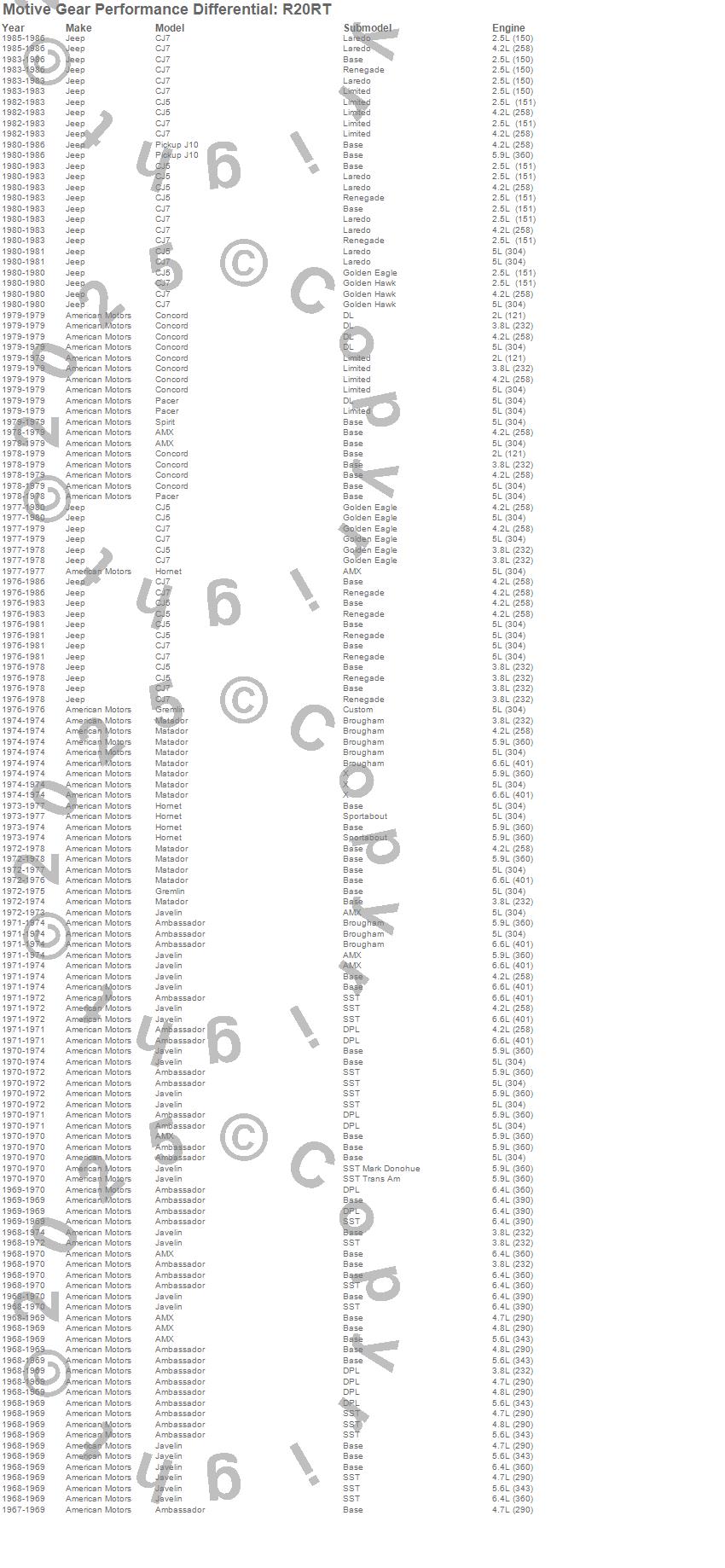 Ambassador, AMX, CJ5, CJ7, Concord, Gremlin, Hornet, J10, Javelin, Matador, Pacer, Spirit, American Motors, Jeep, 1986, 1985, 1984, 1983, 1982, 1981 more…