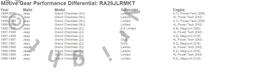 Below is an abreviated list of applications for the Master Bearing Kit.
