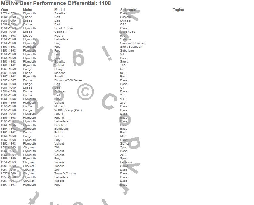 Below is an abreviated list of applications for the Pinion Shim Pack.