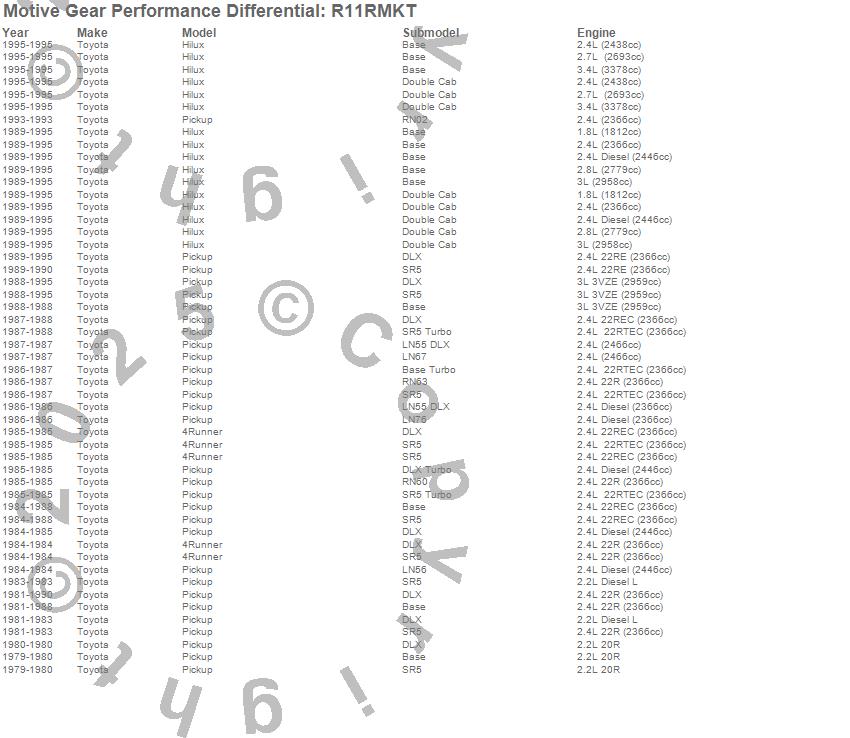 Below is an abreviated list of applications for the Master Bearing Kit.