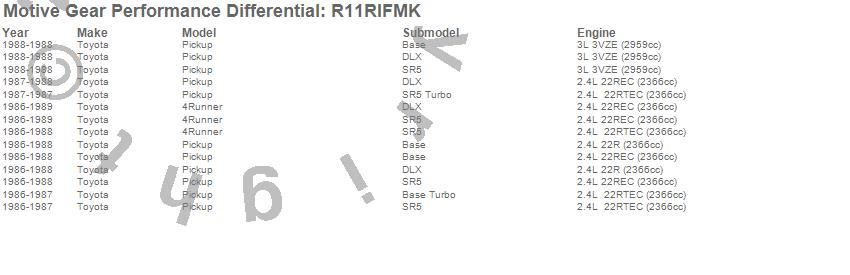 Below is an abreviated list of applications for the Master Bearing Kit.