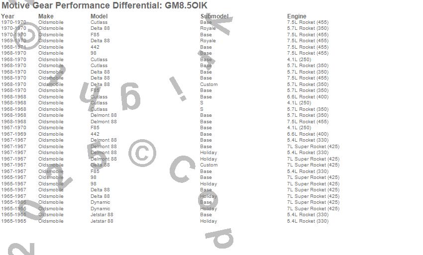 Below is an abreviated list of applications for the Ring And Pinion Installation Kit.