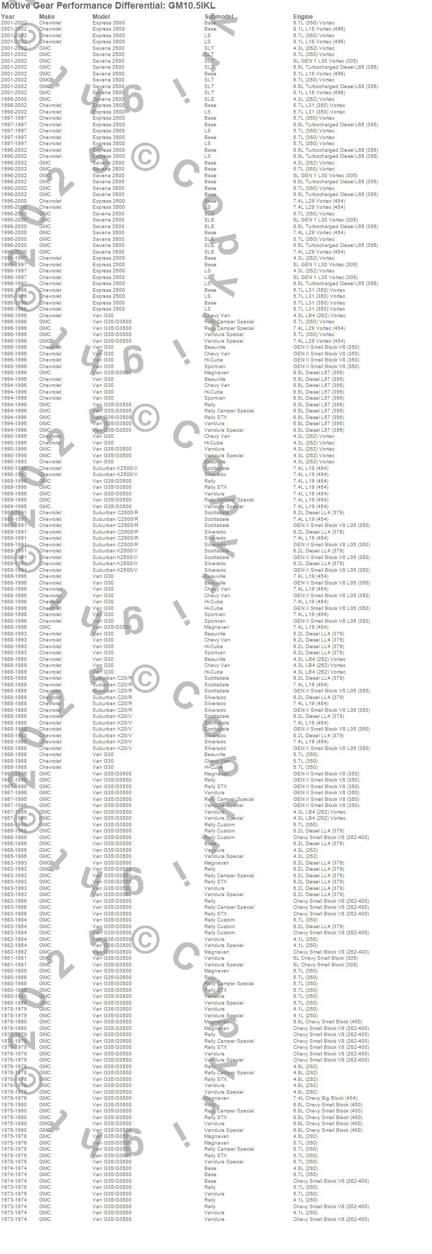 Below is an abreviated list of applications for the Ring And Pinion Installation Kit.