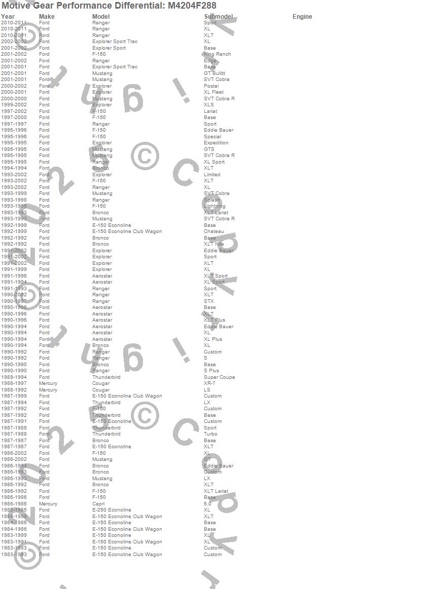 Below is an abreviated list of applications for the Differential Gear Case Kit.