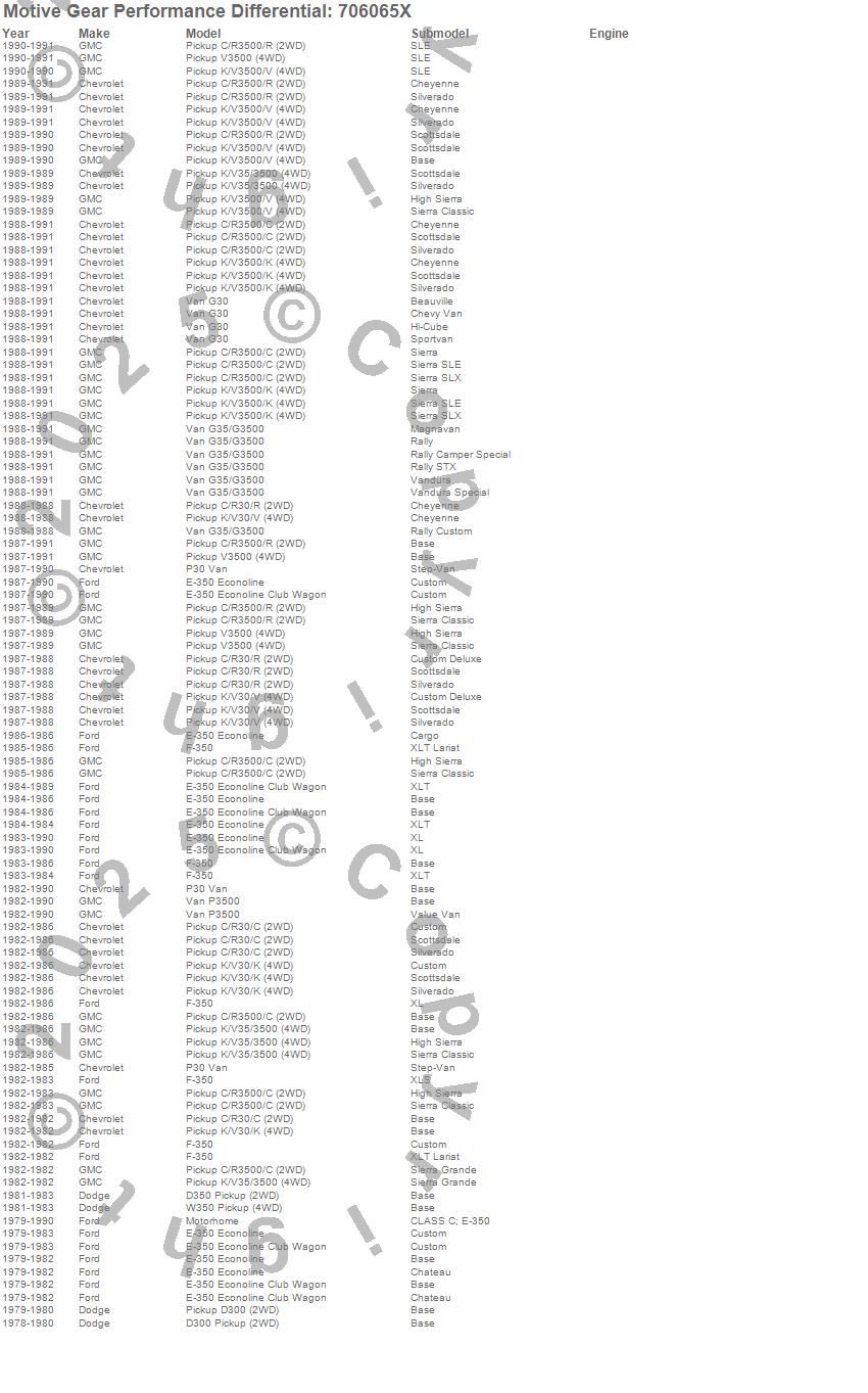 C30 Pickup, C3500 Pickup, D300 Pickup, D350 Pickup, E-350 Econoline, E-350 Econoline Club Wagon, F-350, G30, G30 Van, G35/G3500 Van, K30 Pickup, K3500 Pickup, Motorhome, P30 Van, P3500 Van, R30 Pickup, R3500 Pickup, V30 Pickup, V3500 Pickup, W350 Pickup more…