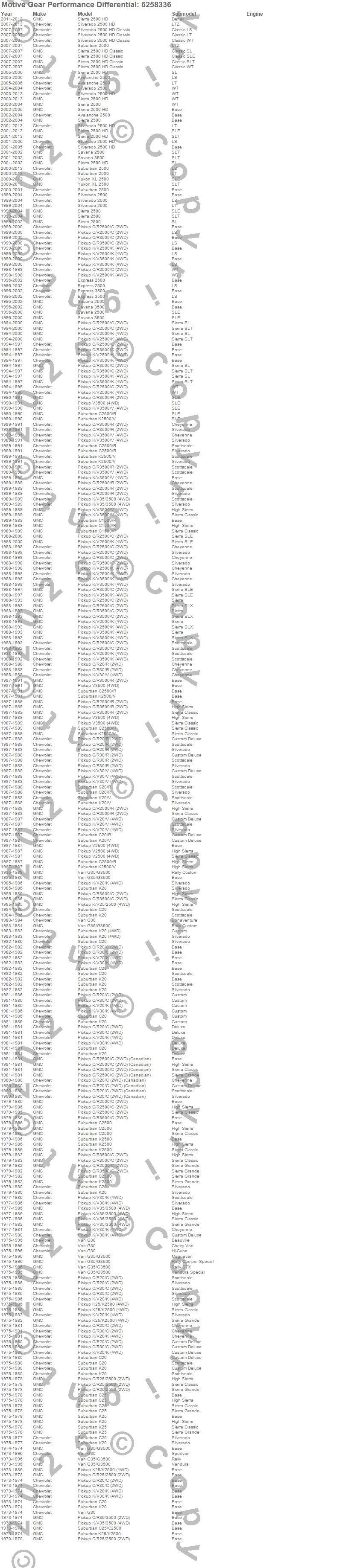 Avalanche 2500, C20 Pickup, C20 Suburban, C25 Suburban, C25/C2500 Pickup, C25/C2500 Suburban, C2500 Pickup, C2500 Suburban, C30 Pickup, C35/C3500 Pickup, C3500 Pickup, Express 2500, Express 3500, G30, G30 Van, G35/G3500 Van, K20 Pickup, K20 Suburban, K25 Pickup, K25 Suburban more…