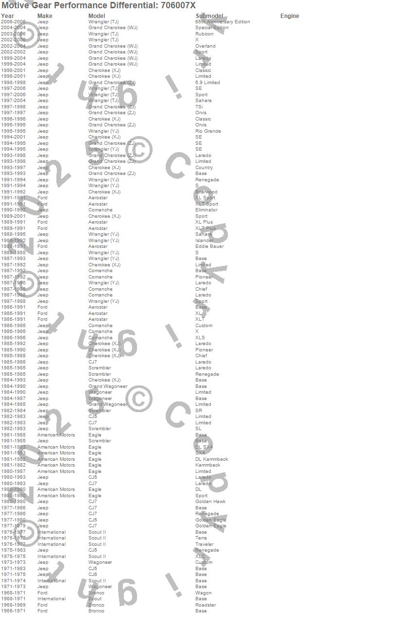 Aerostar, Bronco, Cherokee (XJ), CJ5, CJ6, CJ7, Comanche, Eagle, Grand Cherokee (WJ), Grand Cherokee (ZJ), Grand Wagoneer, Scout, Scout II, Scrambler, Wagoneer, Wrangler (TJ), Wrangler (YJ), American Motors, Ford, International more…