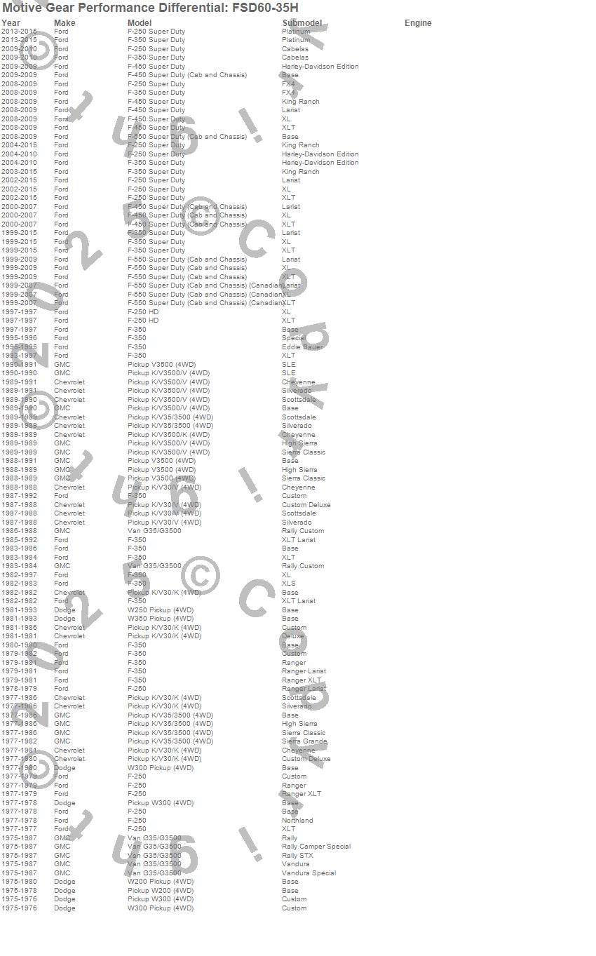 F-250, F-250 Super Duty, F-350, F-350 Super Duty, F-450 Super Duty, F-550 Super Duty, G35/G3500 Van, K30 Pickup, K35 Pickup, K3500 Pickup, V30 Pickup, V3500 Pickup, W200 Pickup, W250 Pickup, W300 Pickup, W350 Pickup, Chevrolet, Dodge, Ford, GMC more…
