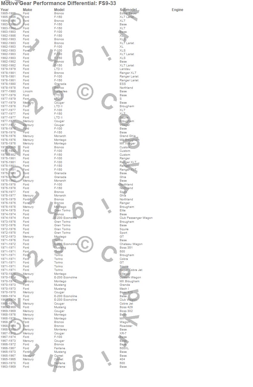 Bronco, Comet, Cougar, E-200 Econoline, F-100, F-150, Fairlane, Gran Torino, Granada, LTD II, Monarch, Montego, Mustang, Torino, Versailles, Ford, Lincoln, Mercury, 1986, 1985 more…