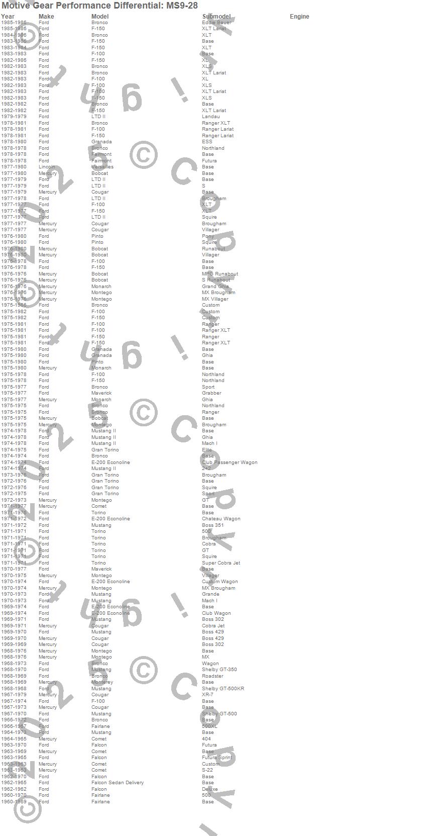Bobcat, Bronco, Comet, Cougar, E-200 Econoline, F-100, F-150, Fairlane, Fairmont, Falcon, Falcon Sedan Delivery, Gran Torino, Granada, LTD II, Maverick, Monarch, Montego, Mustang, Mustang II, Pinto more…