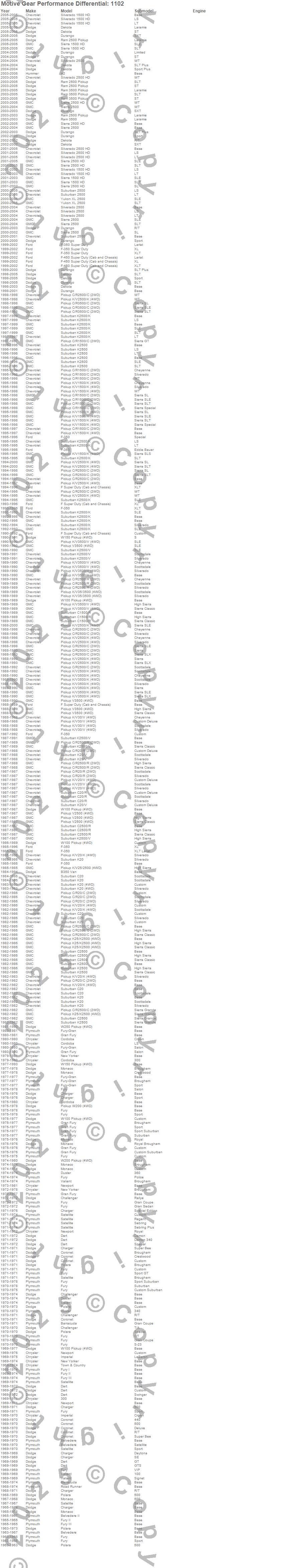 Below is an abreviated list of applications for the Pinion Shim Pack.