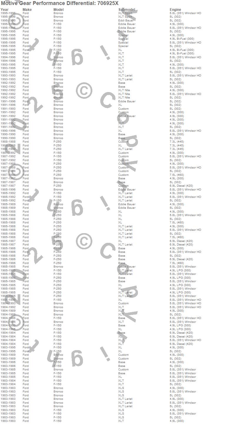 Bronco, F-150, F-250, Ford, 1996, 1995, 1994, 1993, 1992, 1991, 1990, 1989, 1988, 1987, 1986, 1985, 1984, 1983 more…