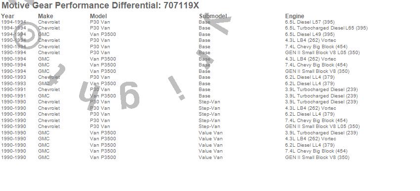 Below is an abreviated list of applications for the Open Differential Internal Kit DANA.
