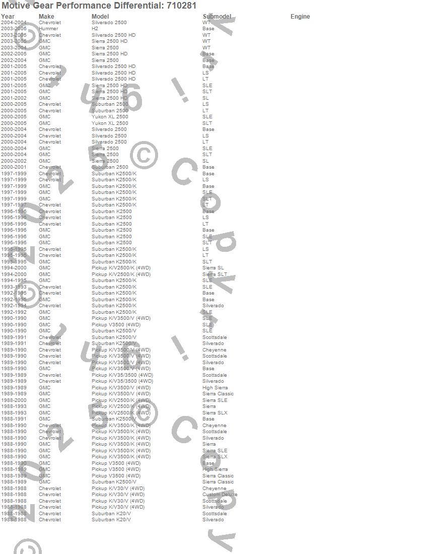 H2, K2500 Pickup, K2500 Suburban, K2500 Suburban (Canadian), K3500 Pickup, Sierra 2500, Sierra 2500 HD, Silverado 2500, Silverado 2500 HD, Suburban 2500, V20 Suburban, V2500 Suburban, V30 Pickup, V3500 Pickup, Yukon XL 2500, Chevrolet, GMC, Hummer, 2006, 2005 more…