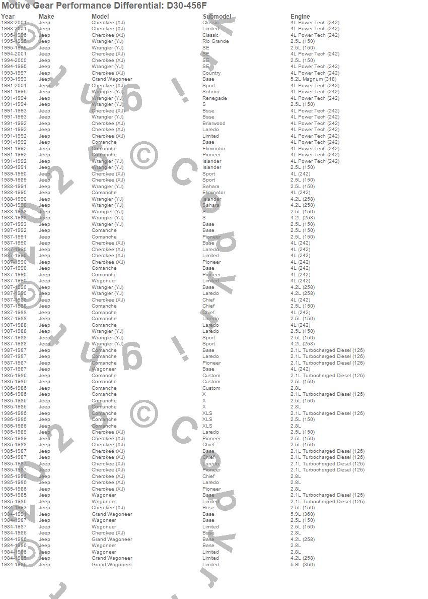 Cherokee (XJ), Comanche, Grand Wagoneer, Wagoneer, Wrangler (YJ), Jeep, 2001, 2000, 1999, 1998, 1997, 1996, 1995, 1994, 1993, 1992, 1991, 1990, 1989, 1988 more…