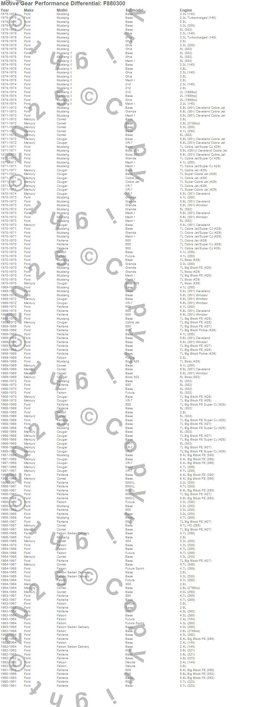 Below is an abreviated list of applications for the Performance Ring And Pinion.