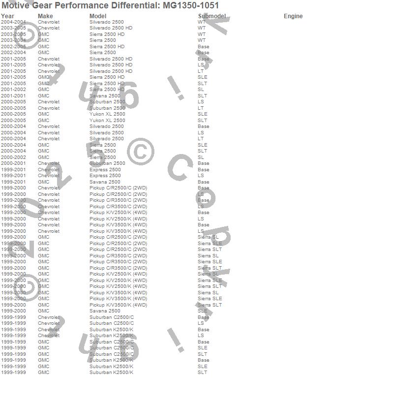 C2500 Pickup, C2500 Suburban, C3500 Pickup, Express 2500, K2500 Pickup, K2500 Suburban, K3500 Pickup, Savana 2500, Sierra 2500, Sierra 2500 HD, Silverado 2500, Silverado 2500 HD, Suburban 2500, Yukon XL 2500, Chevrolet, GMC, 2005, 2004, 2003, 2002 more…