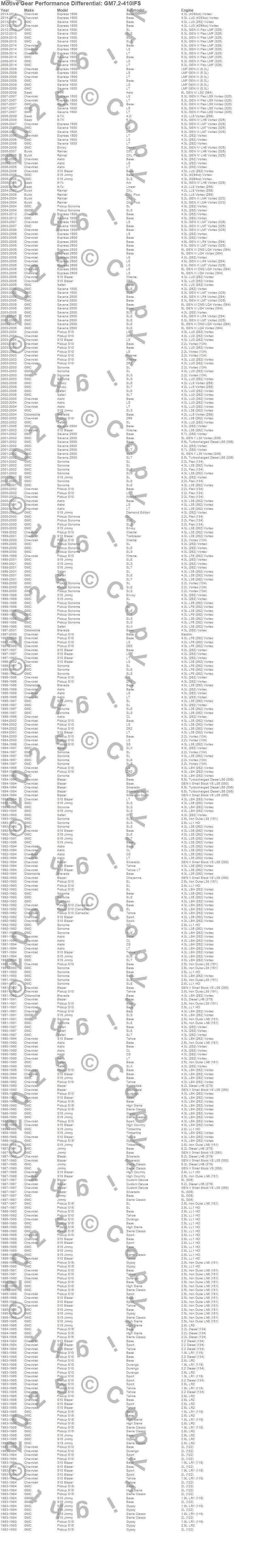Below is an abreviated list of applications for the Performance Ring And Pinion.