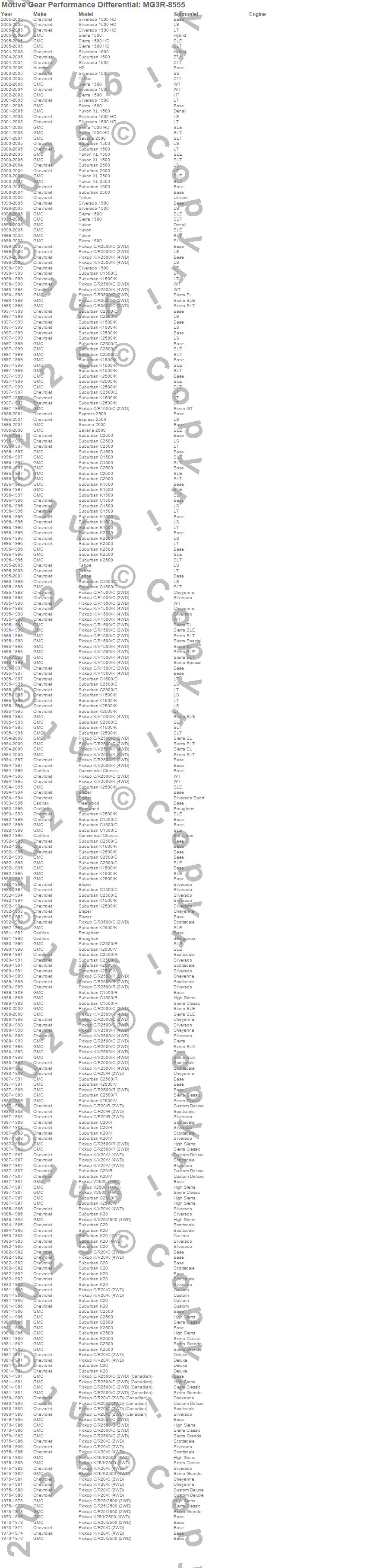 Blazer, Brougham, C1500 Pickup, C1500 Suburban, C20 Pickup, C20 Suburban, C25/C2500 Pickup, C2500 Pickup, C2500 Suburban, C3500 Pickup, Commercial Chassis, Express 2500, Fleetwood, H2, K1500 Pickup, K1500 Suburban, K20 Pickup, K20 Suburban, K25 Pickup, K25/K2500 Pickup more…