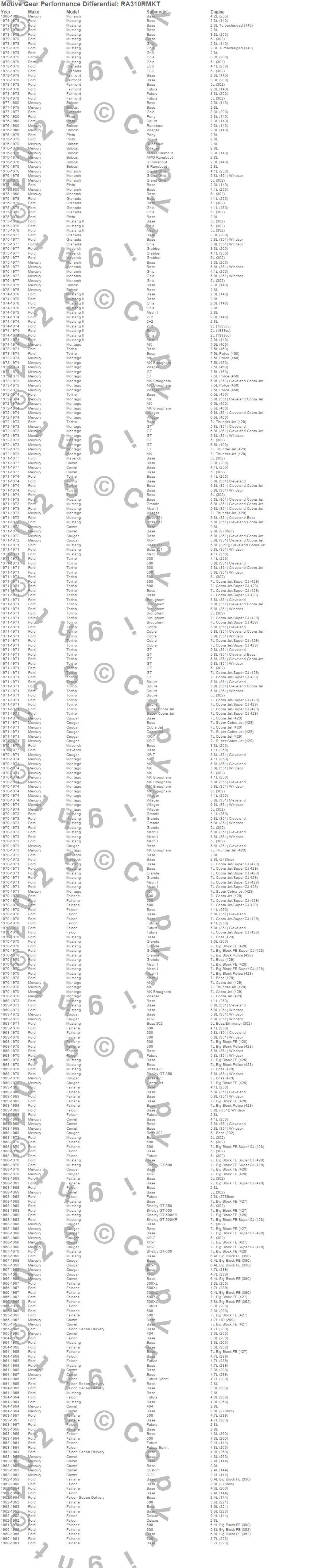 Below is an abreviated list of applications for the Master Bearing Kit.