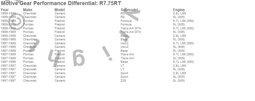 Below is an abreviated list of applications for the Bearing Kit.