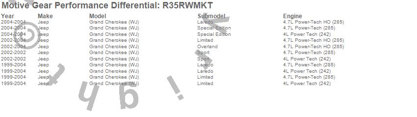 Below is an abreviated list of applications for the Master Bearing Kit.