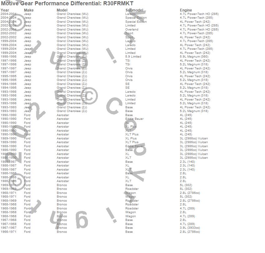 Below is an abreviated list of applications for the Master Bearing Kit.