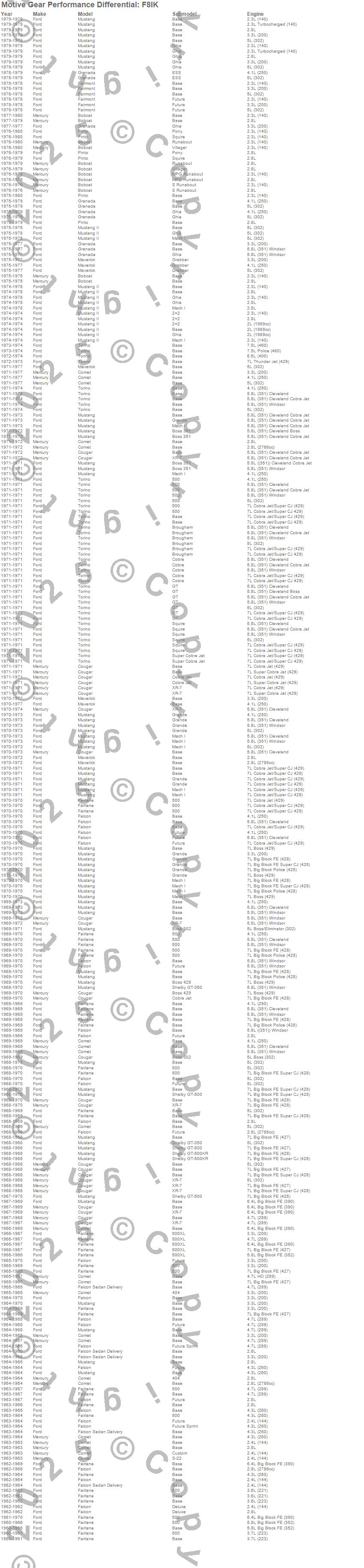 Below is an abreviated list of applications for the Ring And Pinion Installation Kit.