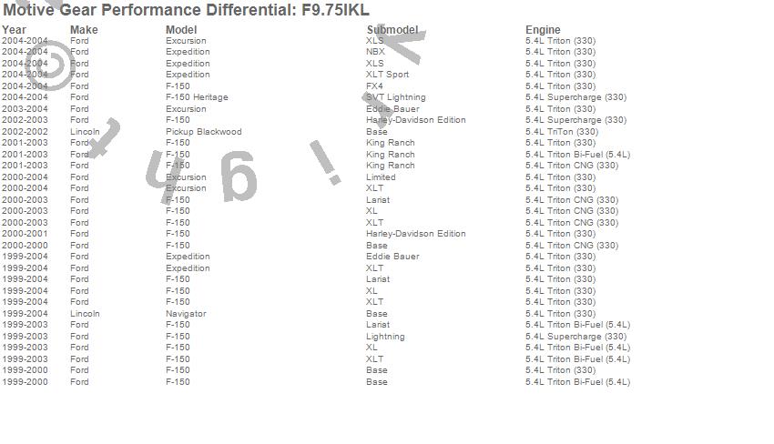 Below is an abreviated list of applications for the Ring And Pinion Installation Kit.