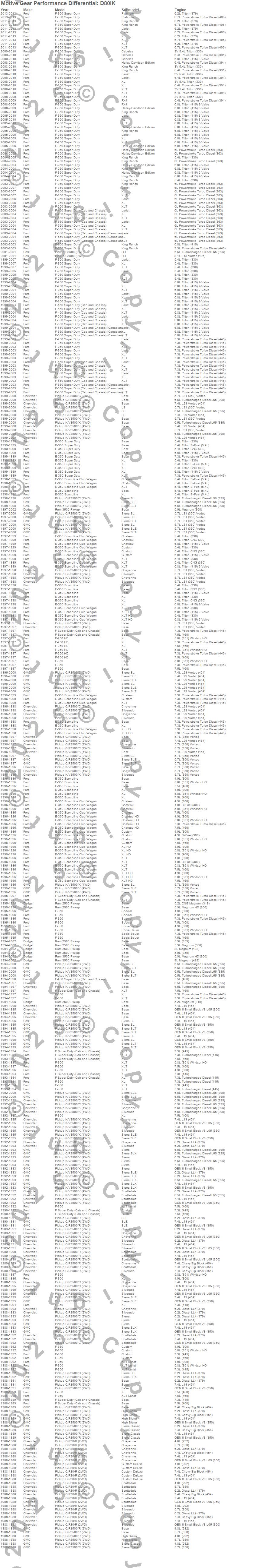 Below is an abreviated list of applications for the Ring And Pinion Installation Kit.