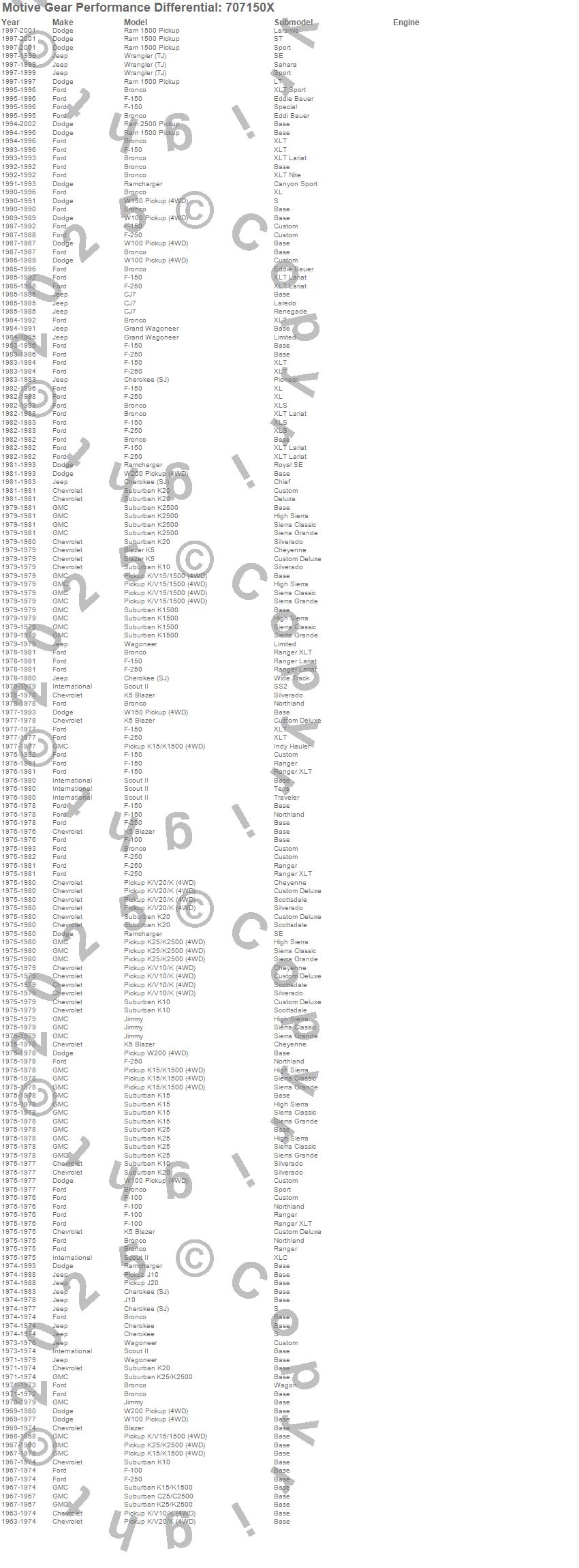Blazer, Blazer K5, Bronco, C25/C2500 Suburban, Cherokee (SJ), CJ7, F-100, F-150, F-250, Grand Wagoneer, J10, J20, Jimmy, K10 Pickup, K10 Suburban, K15 Suburban, K15/K1500, K15/K1500 Suburban, K1500, K1500 Suburban more…