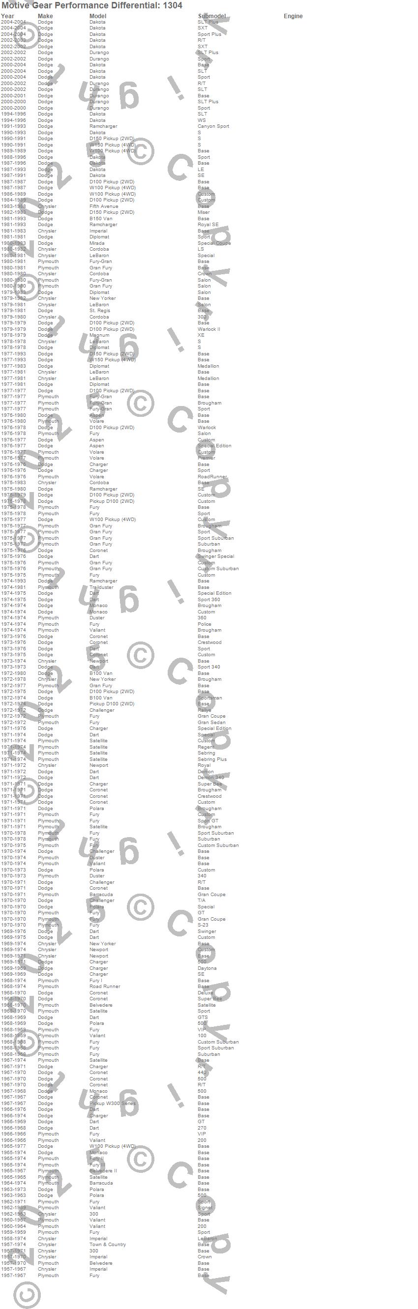 300, Aspen, B100 Van, B150, B150 Van, Barracuda, Belvedere, Belvedere II, Challenger, Charger, Cordoba, Coronet, D100 Pickup, D150 Pickup, Dakota, Dart, Diplomat, Durango, Duster, Fifth Avenue more…