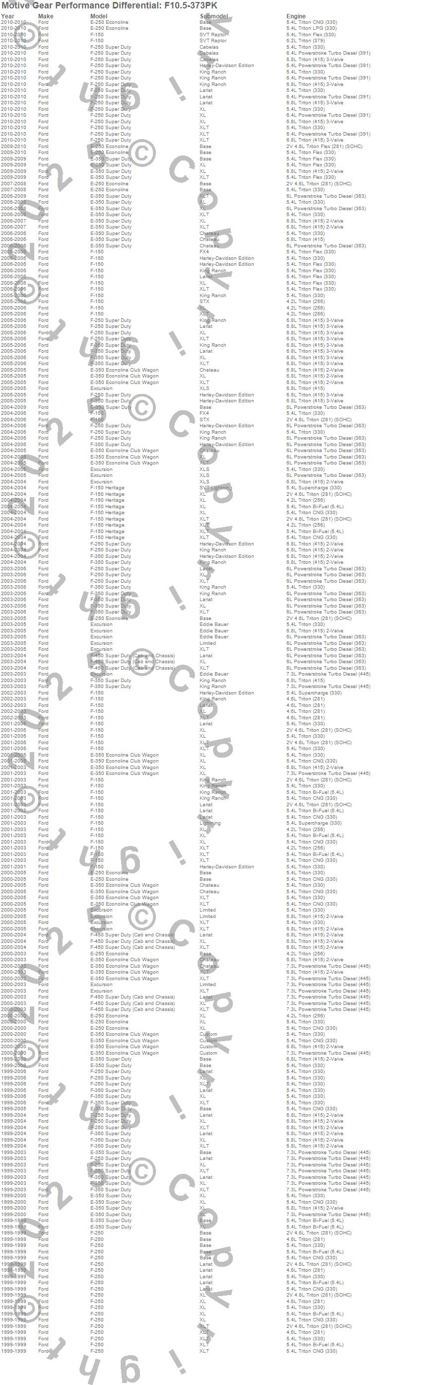 E-250 Econoline, E-250 Super Duty, E-350 Econoline Club Wagon, E-350 Super Duty, Excursion, F-150, F-150 Heritage, F-250, F-250 Super Duty, F-350 Super Duty, F-450 Super Duty, Ford, 2010, 2009, 2008, 2007, 2006, 2005, 2004, 2003 more…
