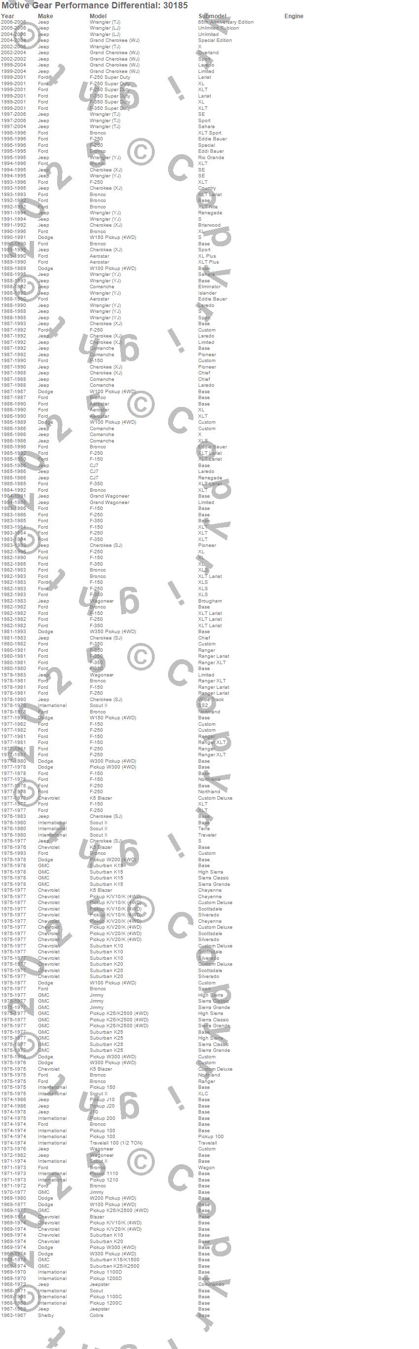 200 Pickup, Aerostar, Blazer, Blazer K5, Bronco, Cherokee (SJ), Cherokee (XJ), CJ7, Cobra, Comanche, F-150, F-250, F-250 Super Duty, F-350, F-350 Super Duty, Grand Cherokee (WJ), Grand Wagoneer, J10, J20, Jeepster more…