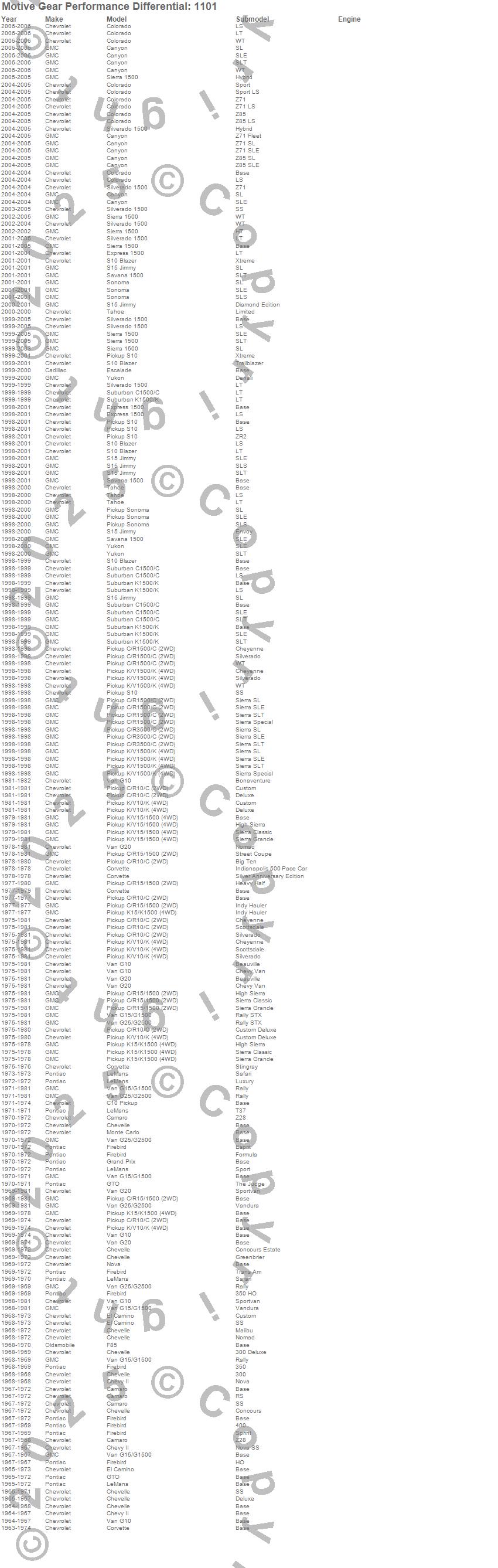 C10 Pickup, C15/C1500, C1500, C1500 Pickup, C1500 Suburban, C3500 Pickup, Camaro, Canyon, Chevelle, Chevy II, Colorado, Corvette, El Camino, Escalade, Express 1500, F85, Firebird, G10 Van, G15/G1500 Van, G20 Van more…