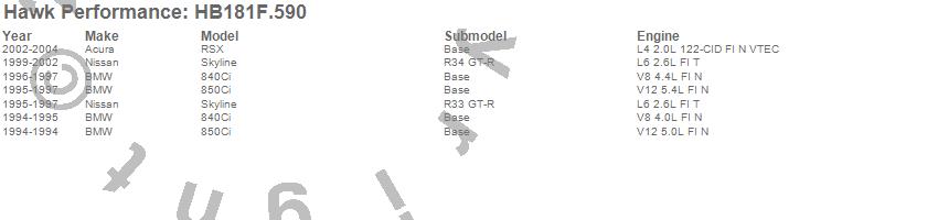 Below is an abreviated list of applications for the Disc Brake Pad.