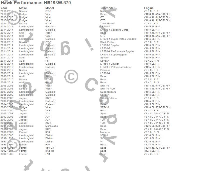 Below is an abreviated list of applications for the Disc Brake Pad.