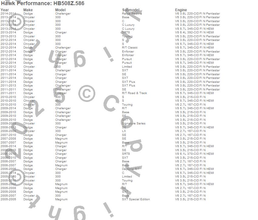 Hawk Performance Disc Brake Pad # HB508Z.586 - Performance Ceramic w/0.586 Thickness